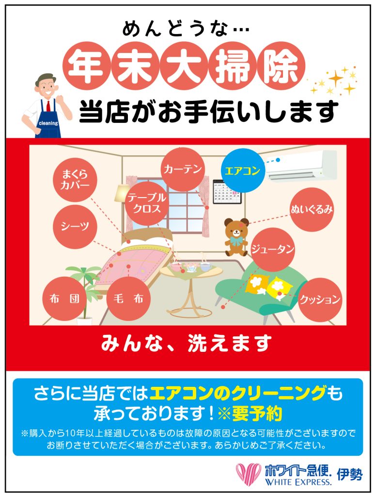少し早いですが、年末の大掃除のご案内です。